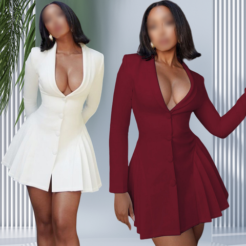 Nueva llegada de alta calidad de las señoras elegantes de manga larga Blazer Mini vestidos para las mujeres